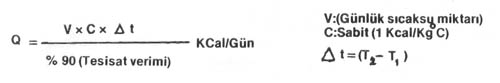 Daily hot water requirement; V = 10 x 4 x 50 V = 2000 liters/day